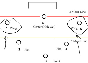 The wing usually plays on the left or right side near the 2-meter line (close to the goal line side). In a standard 6-on-6 setup, wings are: